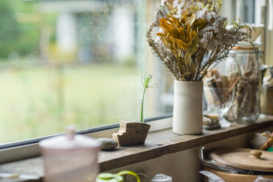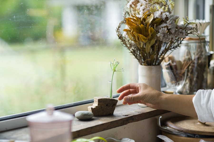 道端に咲いてた小さなお花や、ドライフラワーをちょこっと飾ってもいいですね。