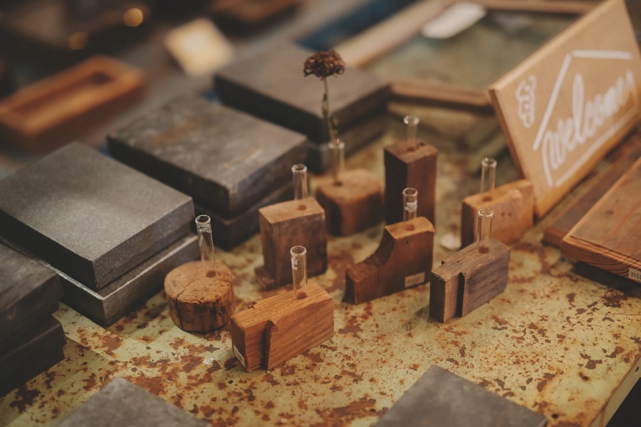 古材のはじっこなど、制作の過程で切り落とされてしまうパーツの可愛さに心奪われ、生まれたプロダクトです。