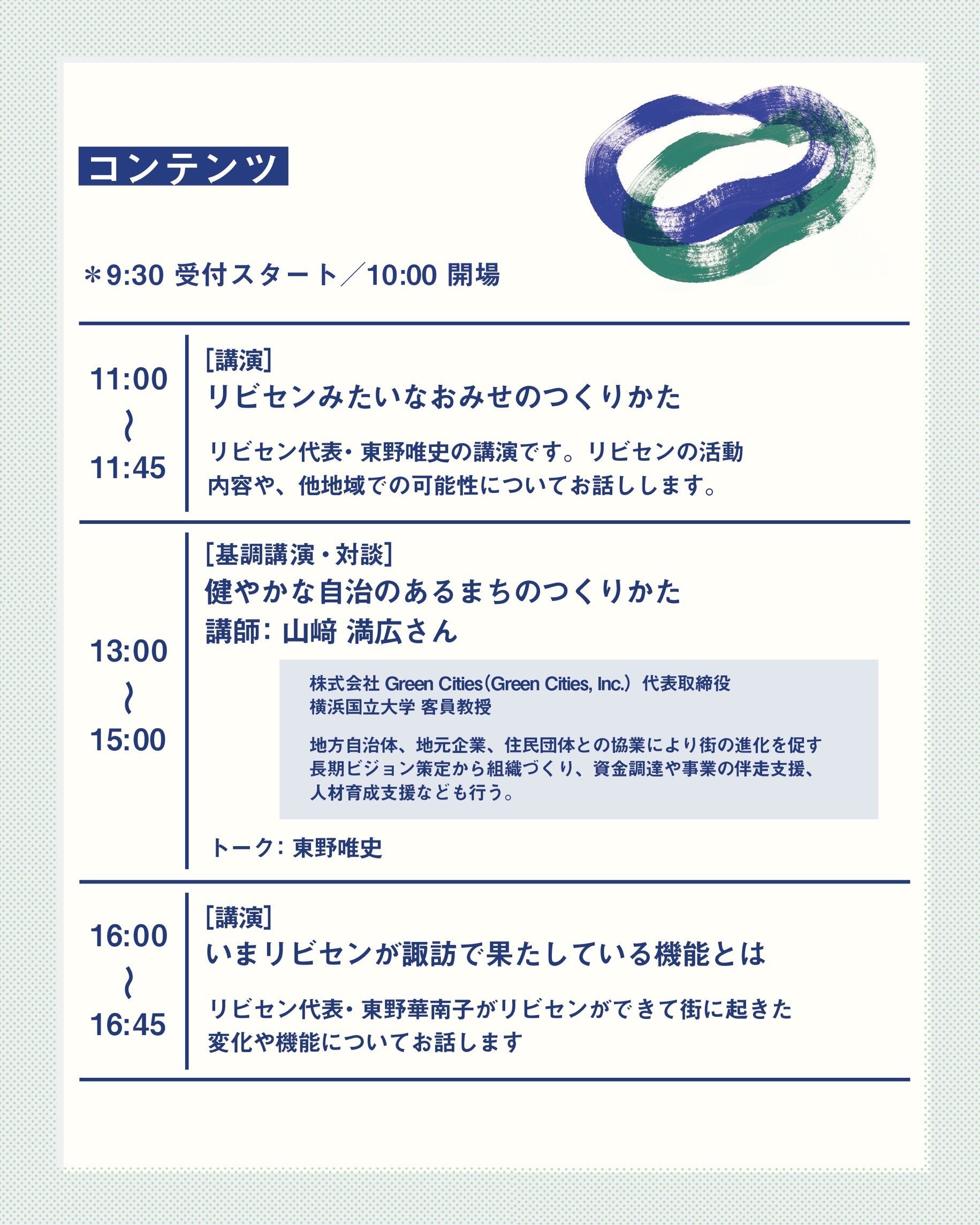 ・11:00〜12:00|[講演]リビセン代表 東野唯史(参加費 無料/1時間)