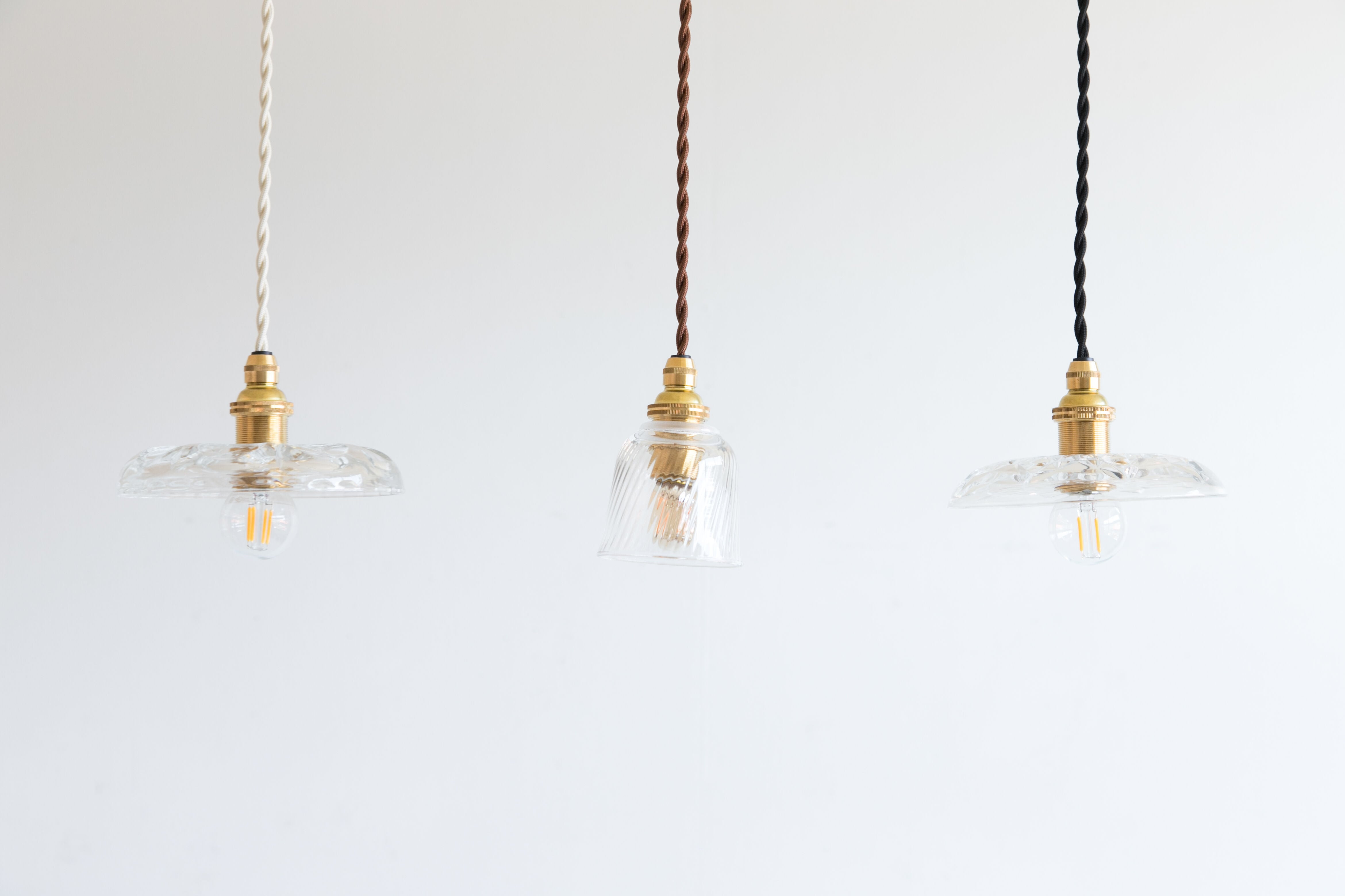 ノスタルジックなガラスたちが、こうしてまた姿を変えて、お部屋にあかりを灯してくれます。
