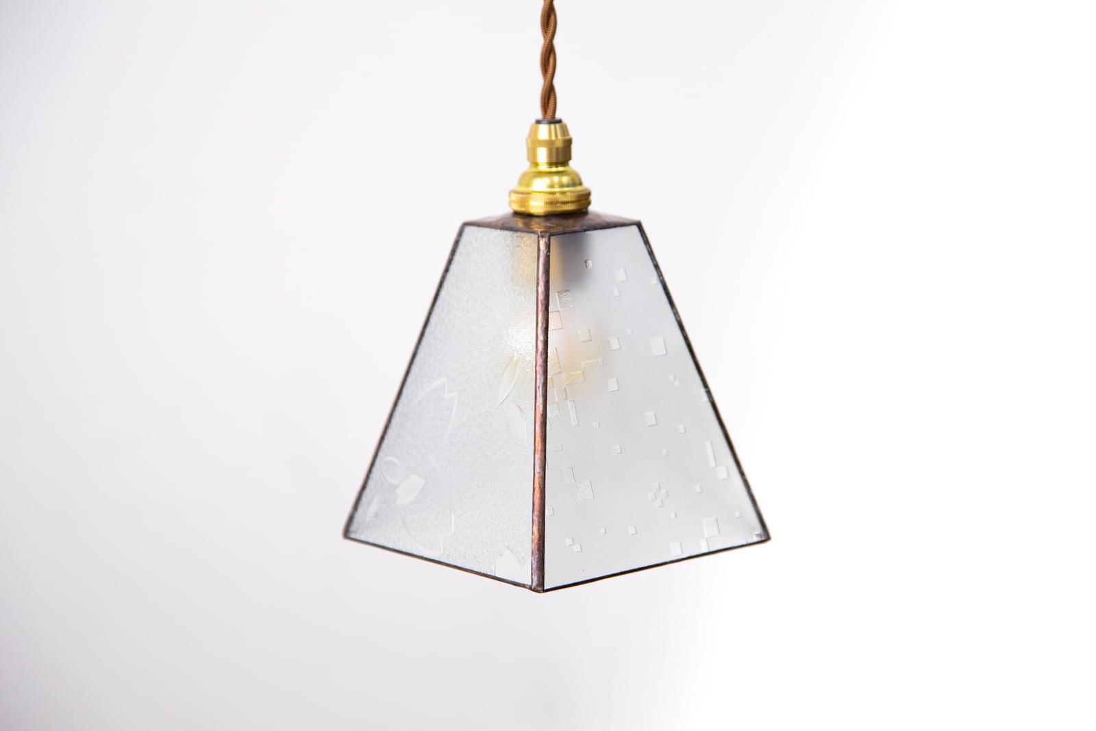 レスキューした型板ガラスを使った、ペンダントライトです。