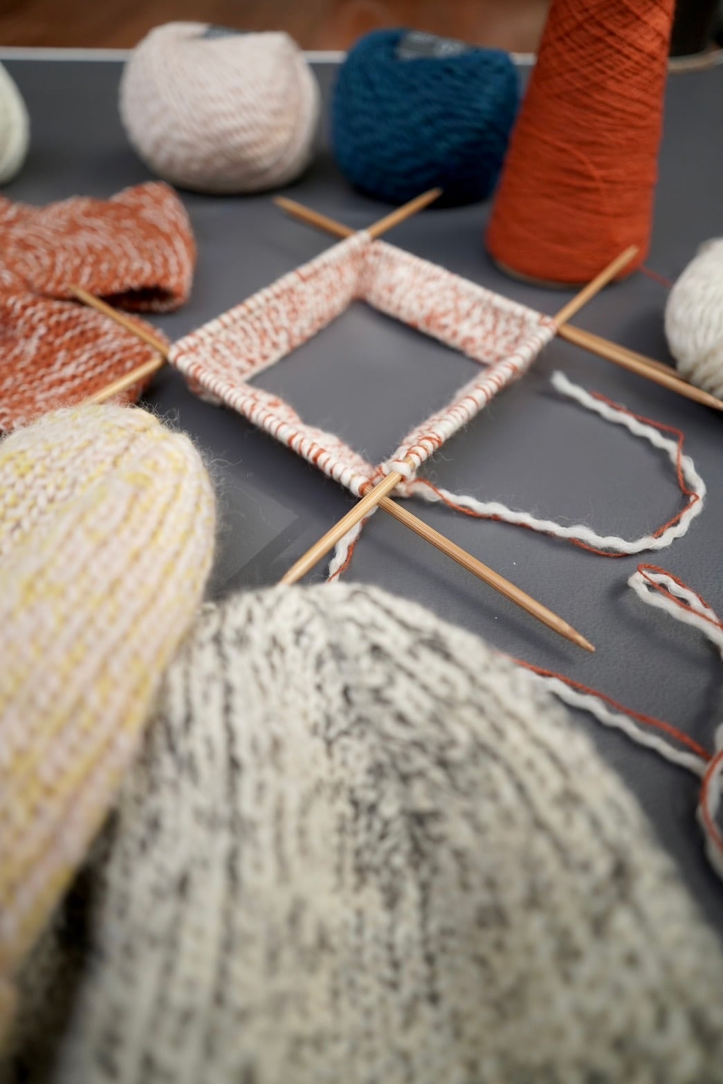 フリー編み会は、ご自身で編んでいるものを持ってきて編むもよし、これ編みたいんだけど、と本を持ってきて相談するもよし、めっちゃ初歩の質問を聞きにくるもよし!自分のペースで編み物をしたいひとにおすすめです。 基本クラスでは、表編み裏編みという基本とそれらを組み合わせて広がる表現の楽しさに触れつつ、いろんな道具や毛糸に触れて、自分がどんな一歩を踏み出すのか!が判断できるようになるところを目指します!