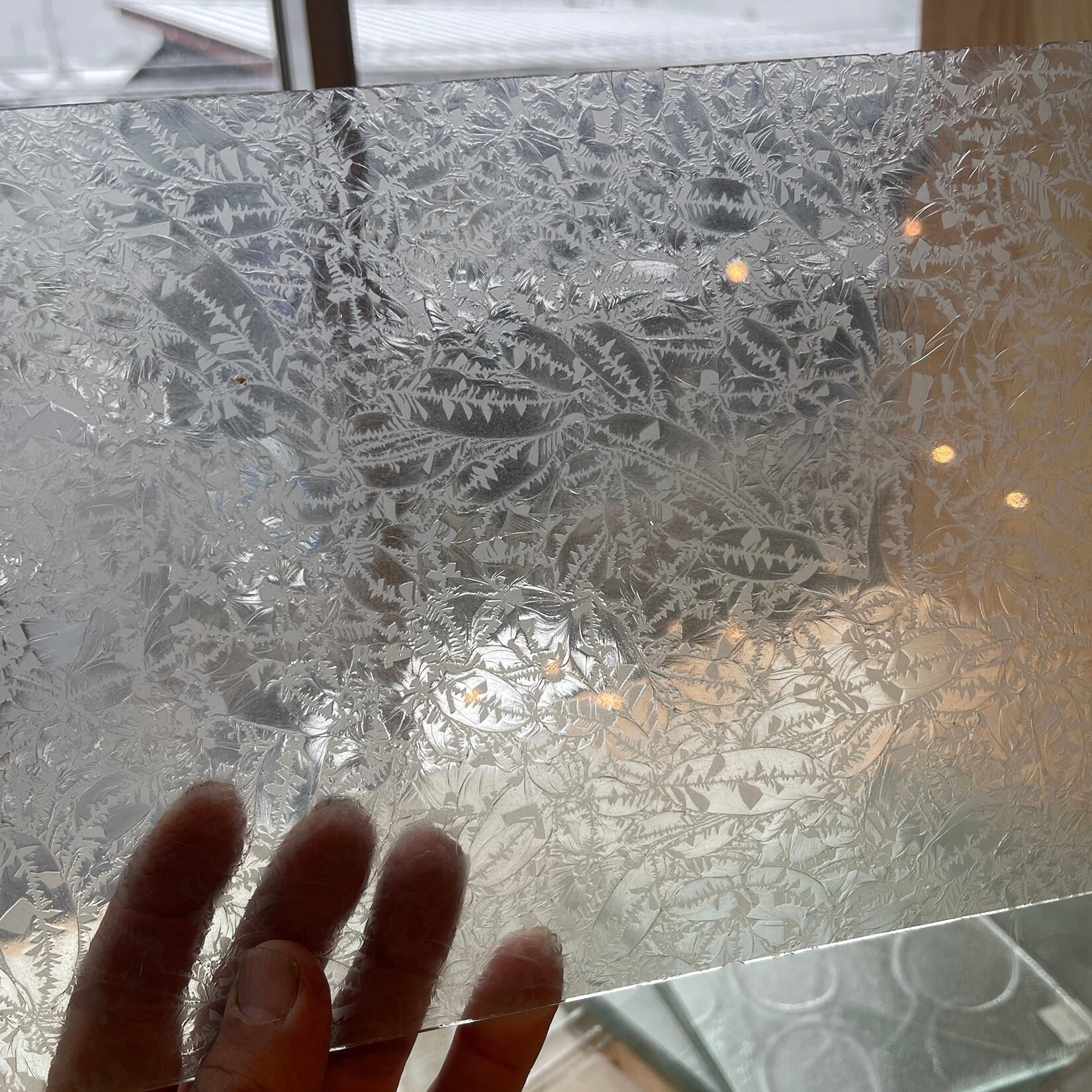リビセンでレスキューした、昭和の型板ガラスをA4サイズにカットしてお届けします。