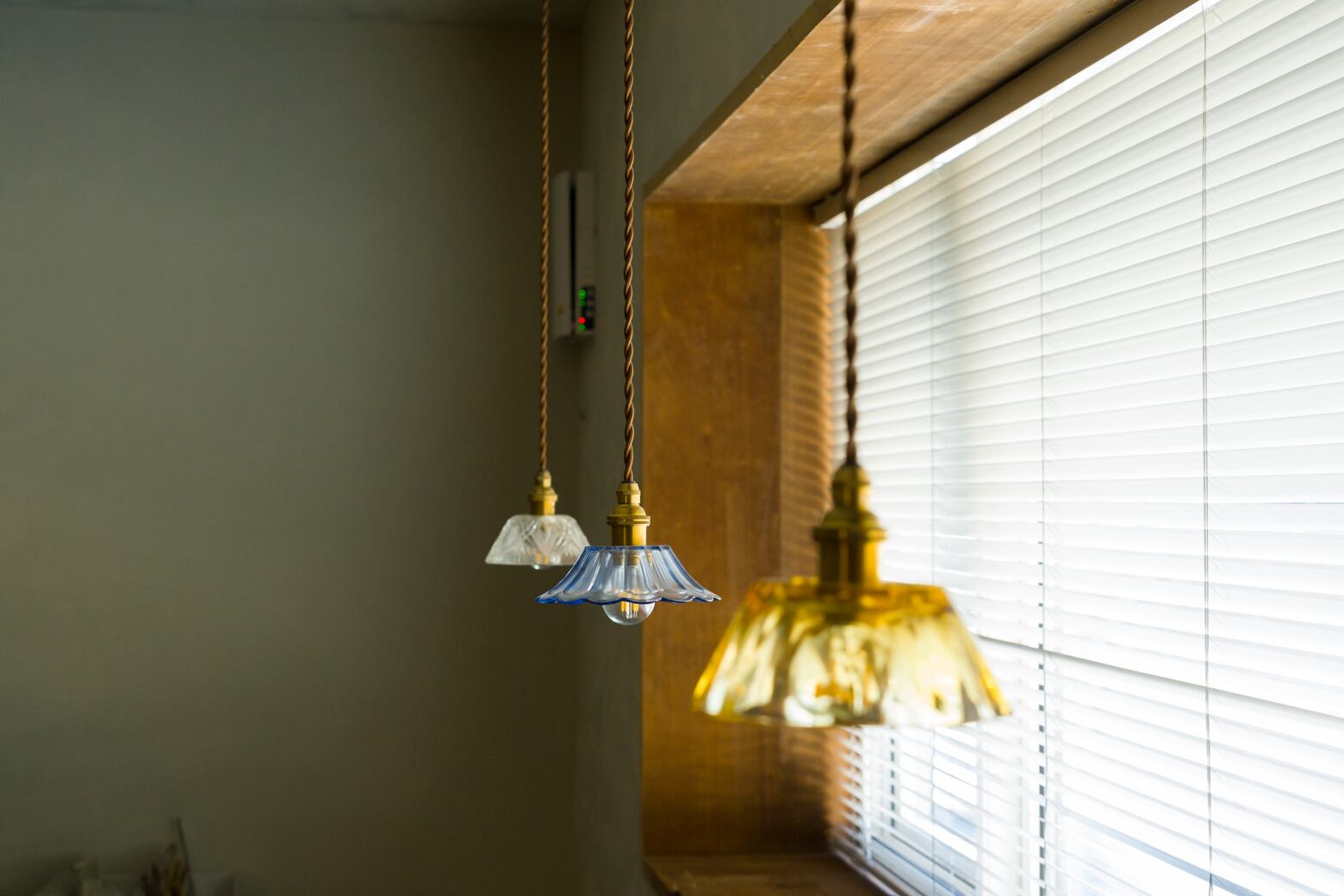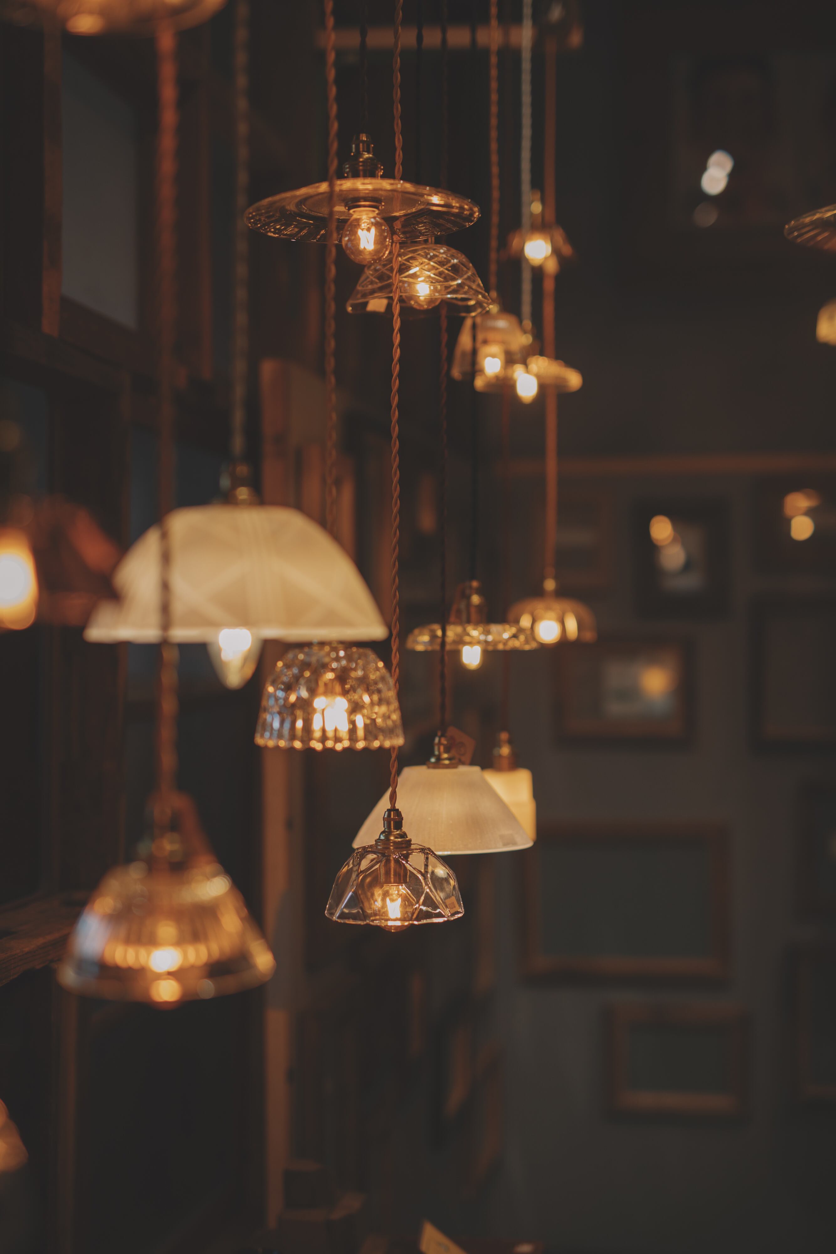 ノスタルジックなガラスたちが、こうしてまた姿を変えて、お部屋にあかりを灯してくれます。