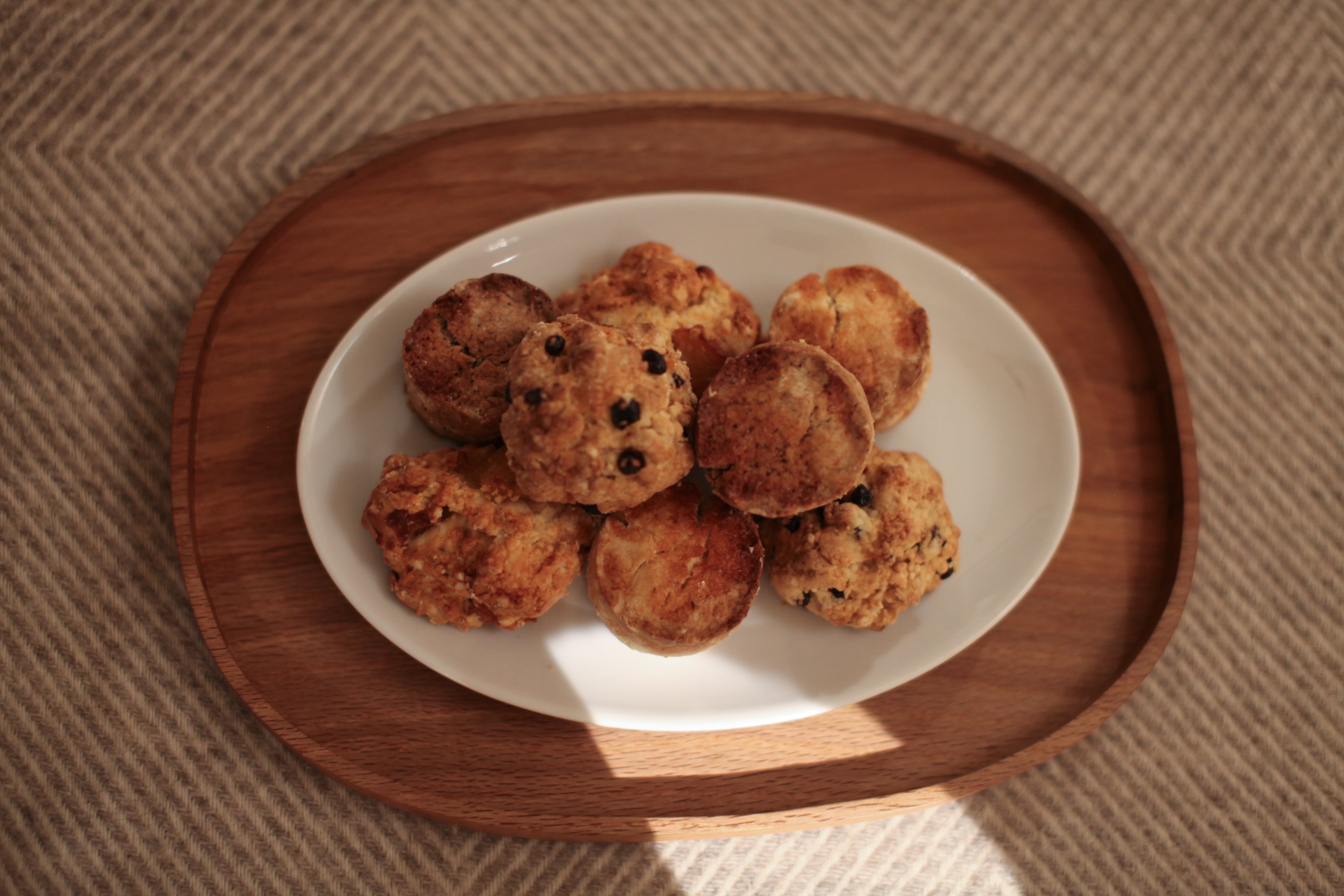 スコーン8個(プレーン2個・りんご2個・コーヒーホワイトチョコ2個・ラムレーズン2個)
